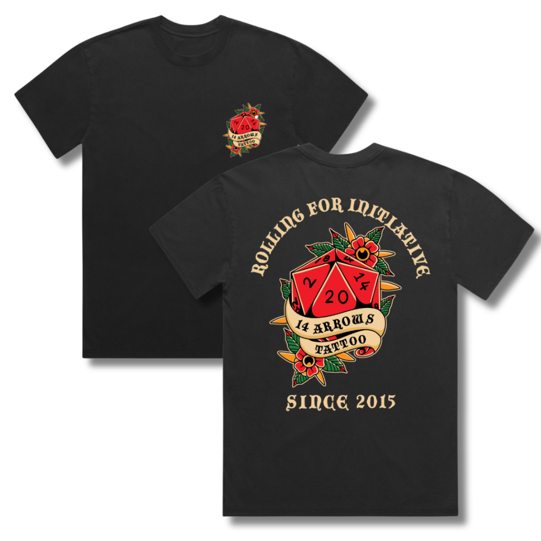 14 Arrows Tattoo is stepping out of the studio and onto the street. Known for bold lines and timeless flash, the crew is dropping a line of traditional tattoo–inspired tees that carry the same punch as their ink. Built on heritage imagery – think daggers, swallows, hearts, and roses – these shirts keep the spirit of classic tattooing alive, ready to wear every day.